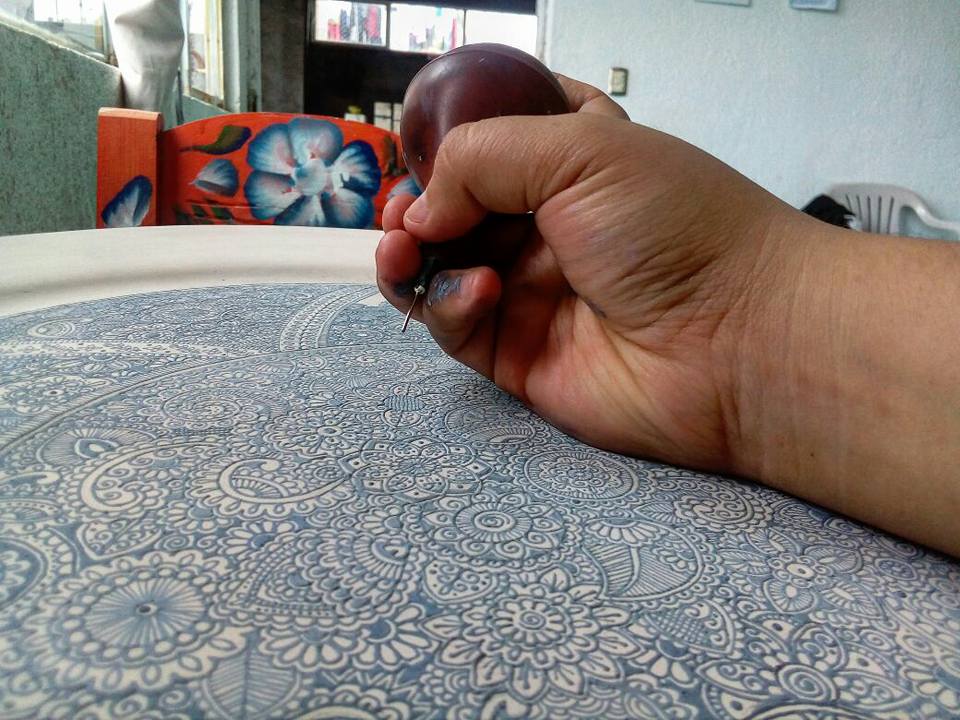 Con un lápiz se marca la pieza para dar el diseño que el artesano allá escogido.