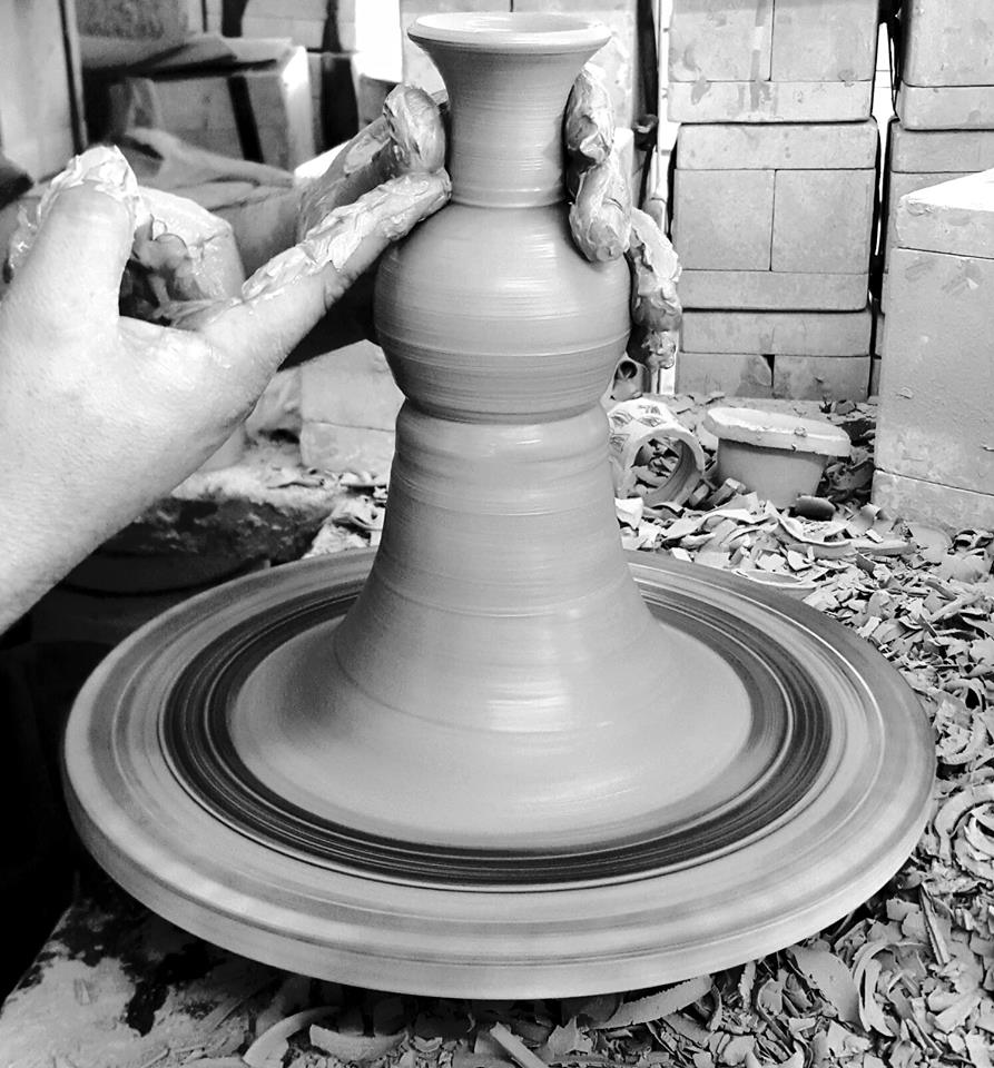 Se amasa la mezcla para eliminar burbujas de aire para posteriormente pasar al torno conde el maestro comienza a generar las piezas dando forma desde pequeña a su tamaño normal, el siguiente paso es dejar secar la pieza para poder eliminar exceso de pasta y rectificar el diseño pegando asas, perillas etc.